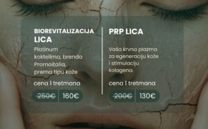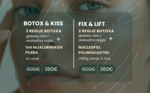 Iskoristite specijalne akcije na tretmane estetske i regenerativne medicine koje će vašoj koži vratiti mladalački sjaj i vitalnost. Ograničena ponuda za najefikasnije procedure koje podmlađuju, hrane i regenerišu vašu kožu.